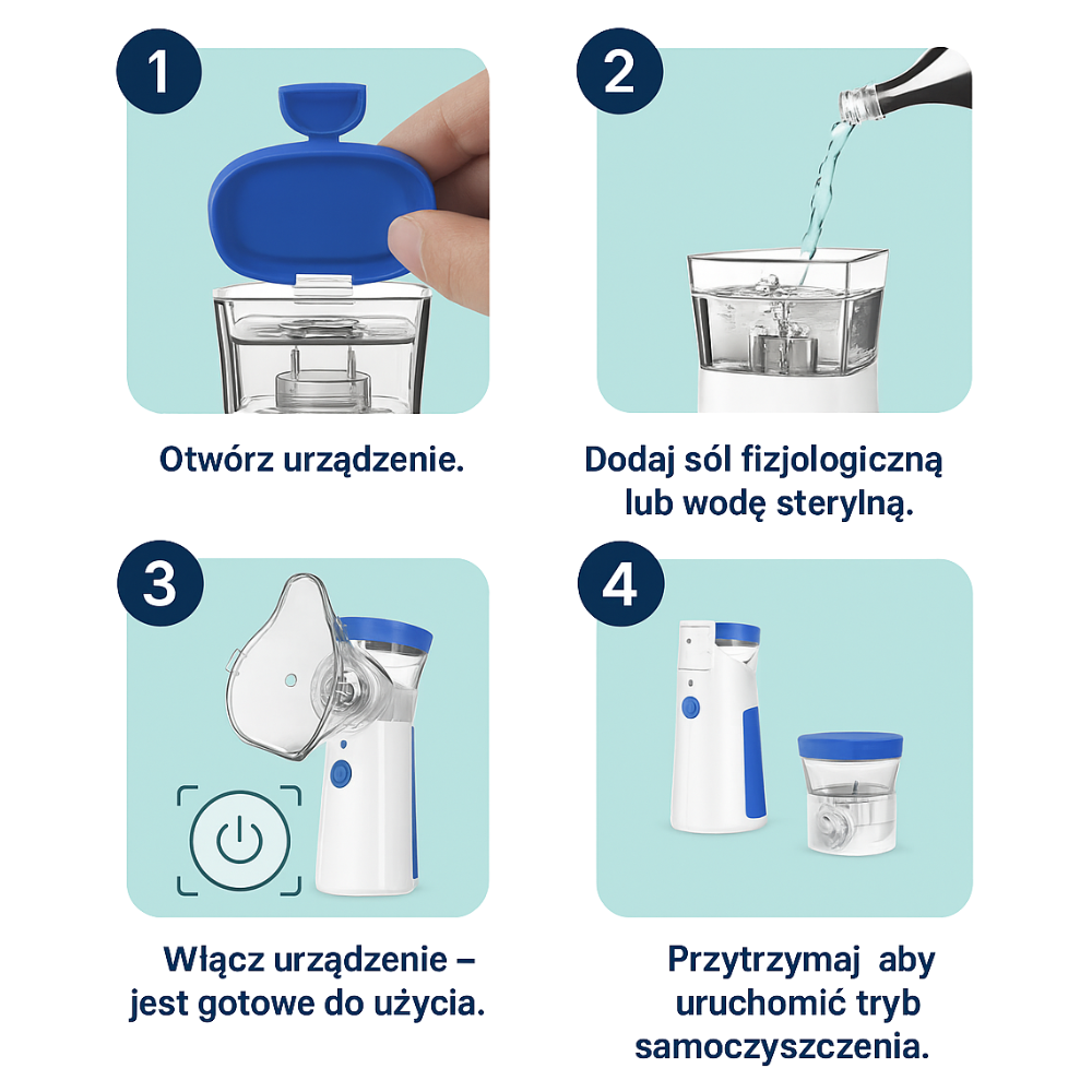 👌 Skuteczna inhalacja bez wysiłku – wystarczy jeden przycisk, by uruchomić terapię i poczuć różnicę już po kilku minutach.